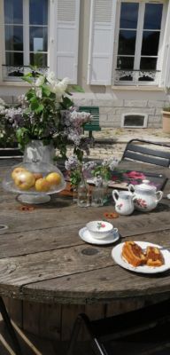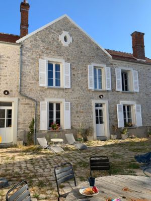 Dès votre arrivée à Colibri des Champs et le portail poussé, la vaste cour vous accueille par sa beauté, ses pavés anciens (identiques à ceux du château de Fontainebleau) et son charme intemporel. Elle offre un espace extérieur généreux et permet d’accéder aux différentes entrées de la maison principale, grange et petite maison.